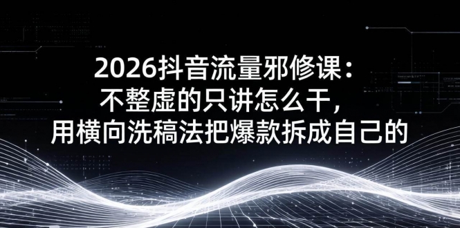 是一套能让你把抖音账号真正跑通的运营课,不整虚的,全是怎么干的。很多人做不起来,不是不够拼,是压根不知道爆款长什么样,也不知道上哪儿抄、怎么抄才算自己的。我干过导演,